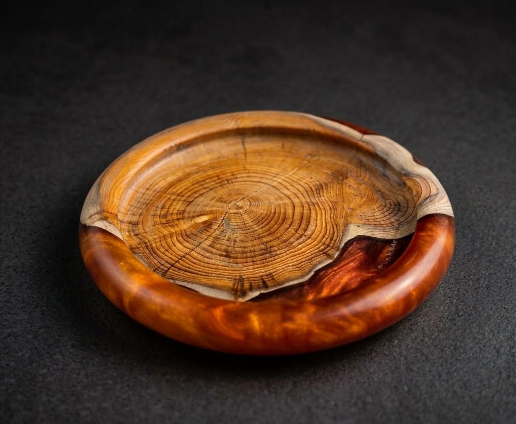 Signature lathe turned pieces, highlighting the beauty and natural grain of the wood.